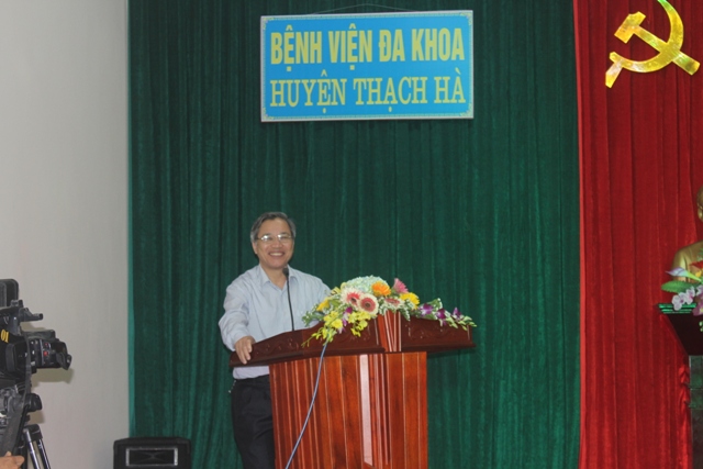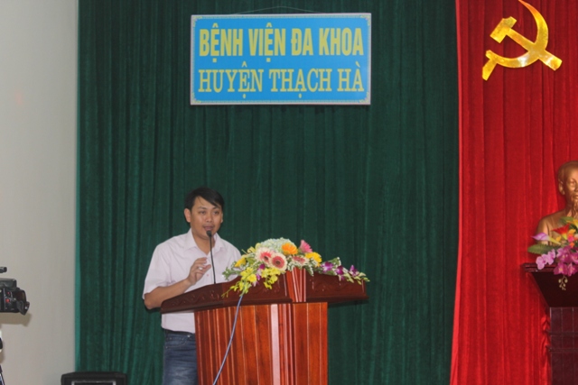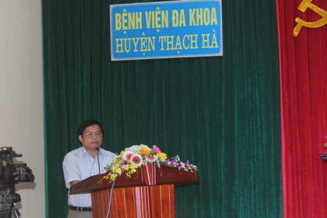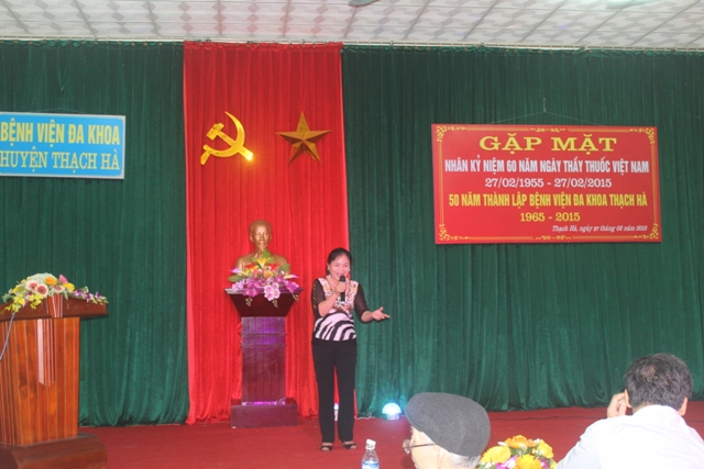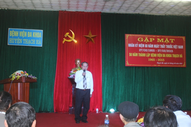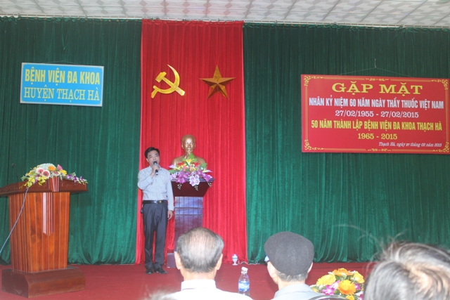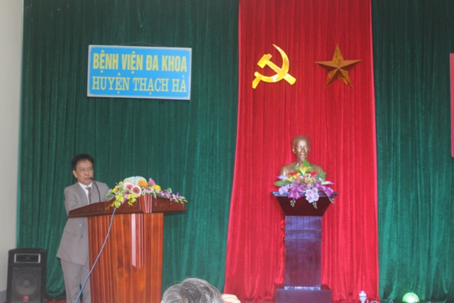 Thay mặt Ban giám đốc, đồng chí Lê Văn Bình đã gửi lời chúc mừng tốt đẹp đến cựu các thầy thuốc và các thầy thuốc đang công tác tại bệnh viện những lời tốt đẹp nhất, chân thành cảm ơn công lao của các bậc tiền bối đi trước. Đồng chí Bình cũng đã đọc lịch sử hình thành và những bước ngoặt, những thành công của bệnh viện qua các thời kỳ. Để có được như ngày hôm nay thì đã có bao nhiêu công sức của các bậc tiền bối đi trước đổ ra, có người còn đổ cả máu và nước mắt. Phát huy tinh thần đó, đồng chí Giám đốc cũng đã hứa với cựu các cán bộ và toàn thể nhân viên bệnh viện sẽ ra sức xây dựng và phát triển bệnh viện Thạch Hà trong thời kỳ mới vững vàng và xứng đáng là niềm tin của người bệnh.
