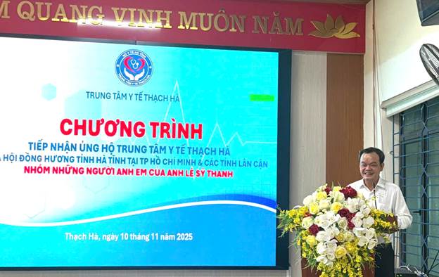 Sáng ngày 10/11/2025, Trung tâm Y tế Thạch Hà tổ chức Chương trình tiếp nhận nguồn kinh phí ủng hộ 164 triệu đồng do Nhóm những người anh em của ông Lê Sỹ Thanh trao tặng.
