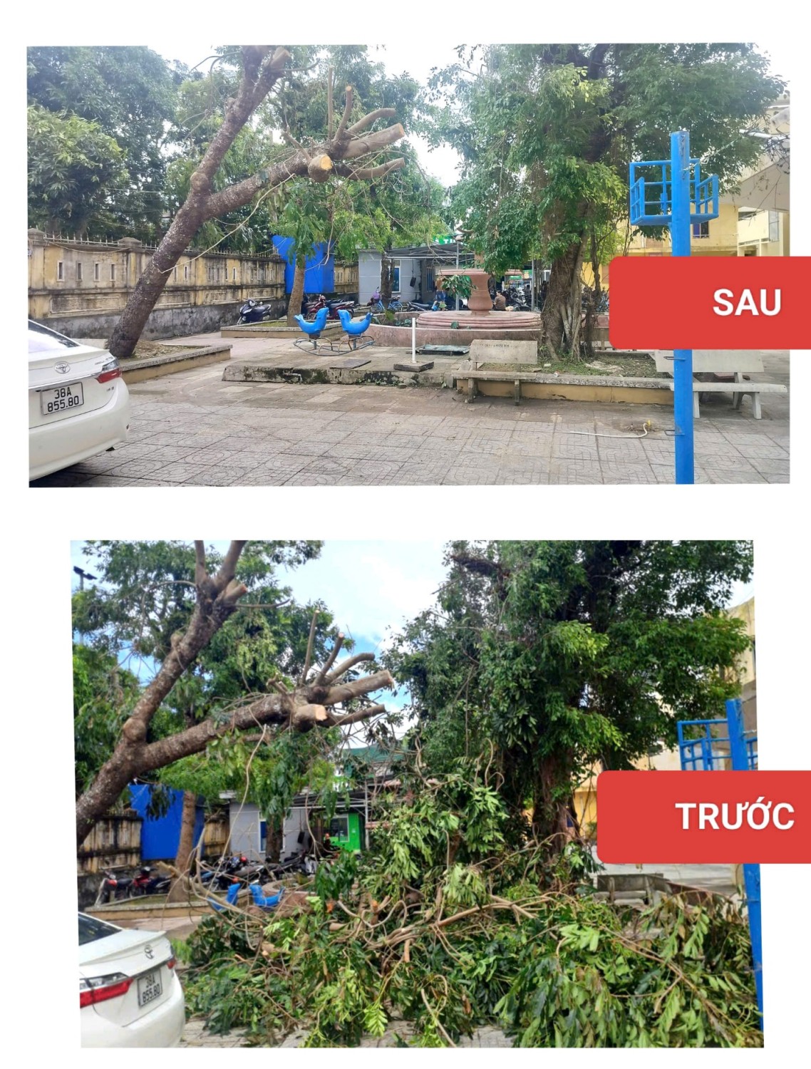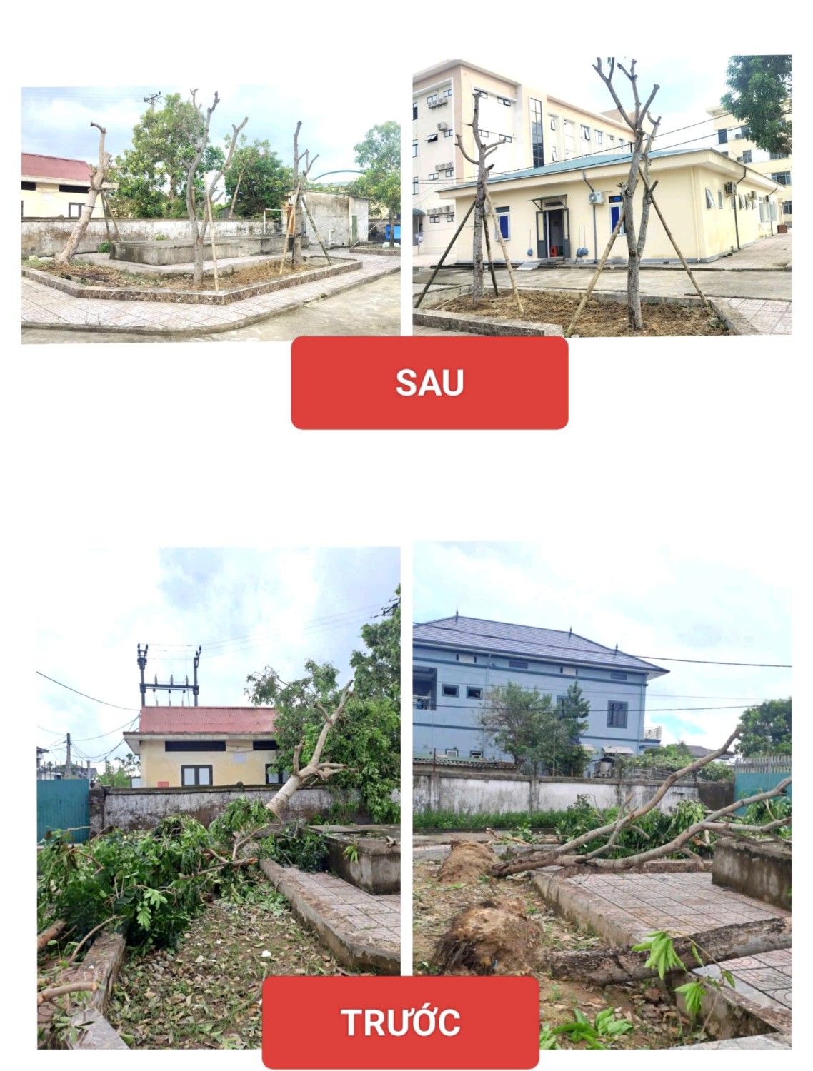 Sau một buổi ra quân khẩn trương, khuôn viên Trung tâm Y tế Thạch Hà đã trở nên gọn gàng, sạch sẽ và xanh mát hơn. Nhiều cây xanh bị bão quật ngã đã được dựng chống, cố định chắc chắn, hứa hẹn sẽ tiếp tục sinh trưởng và mang lại bóng mát cho cảnh quan.